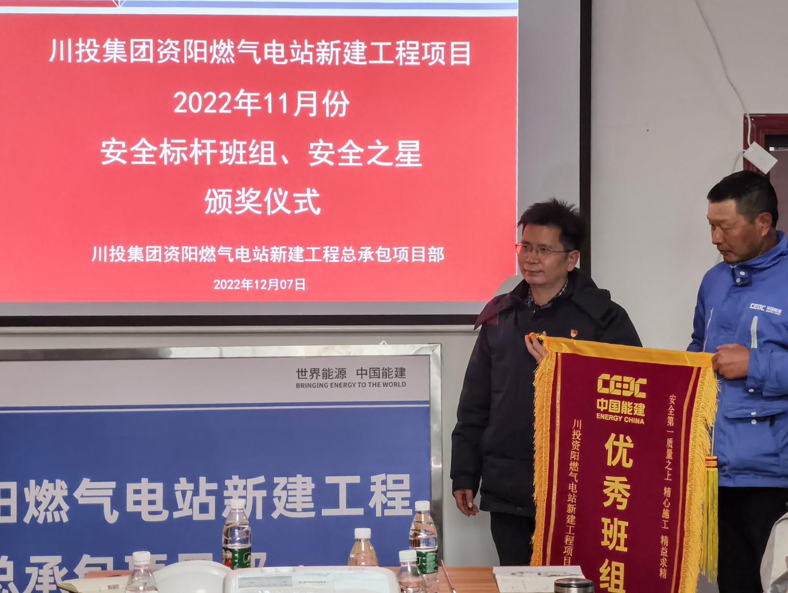 12月7日,资阳燃气电站项目进行了首次“标杆班组”“安全之星”评选表彰活动。资阳气电公司副总经理、首席安全官严天元出席表彰会并为“标杆班组”和“安全之星”颁奖。