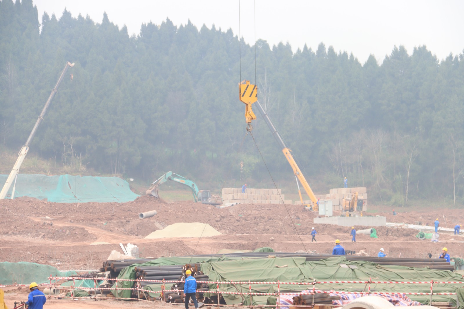 以安全为保障,项目建设快速“复位”。截止1月29日,项目已有200余人返岗复工。主厂房结构施工、环形道路铺设、桩基施工、锅炉安装、取水管道作业等工作全面铺开,挖掘机、铲车、工程运输车、塔吊等大型机械“轰轰隆隆”,项目现场一片热火朝天的景象,确保项目建设攻坚年实现“开门红”。