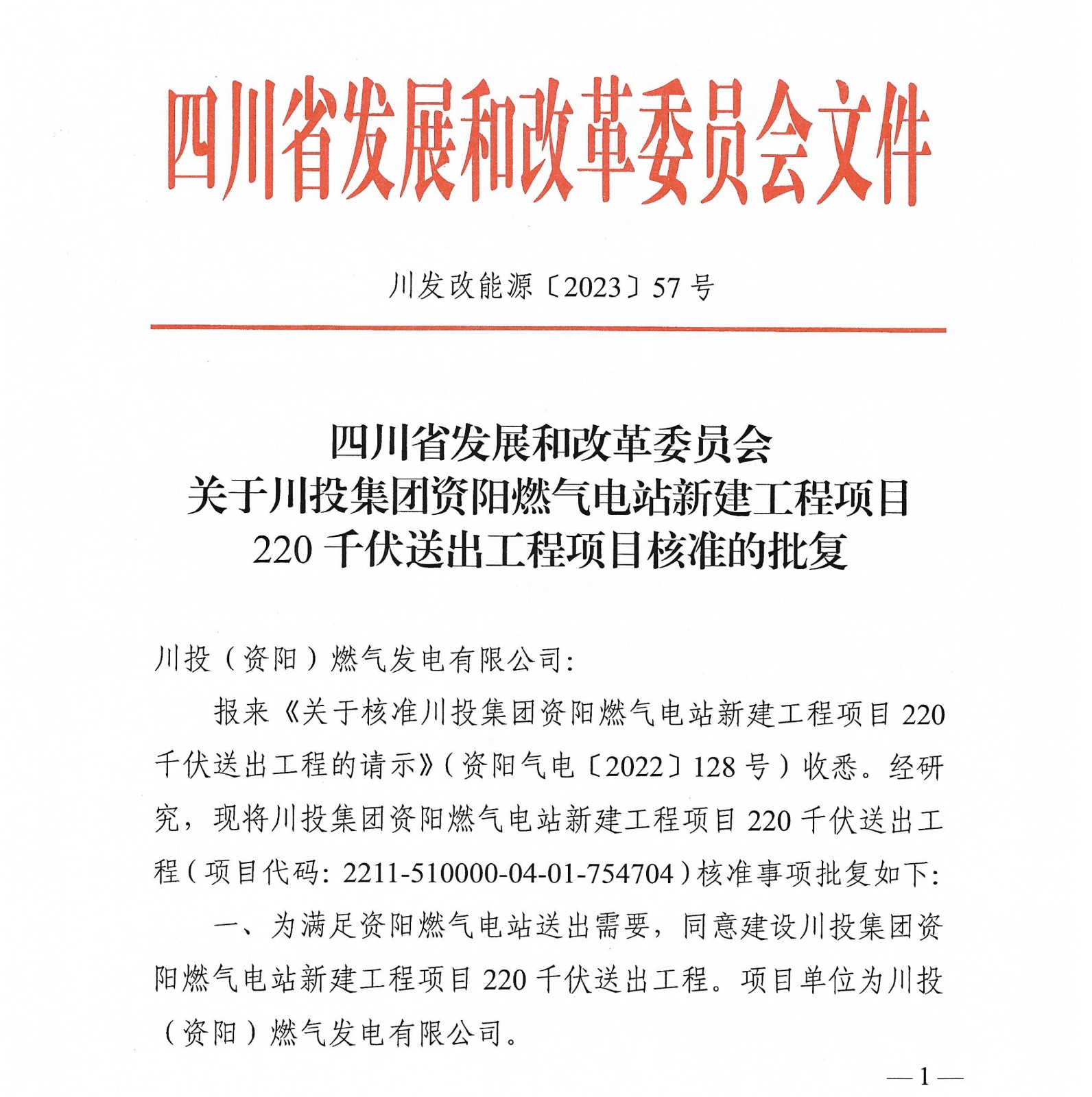 2月9日,川投集团资阳燃气电站新建工程项目220千伏送出工程项目获得省发改委核准批复。
