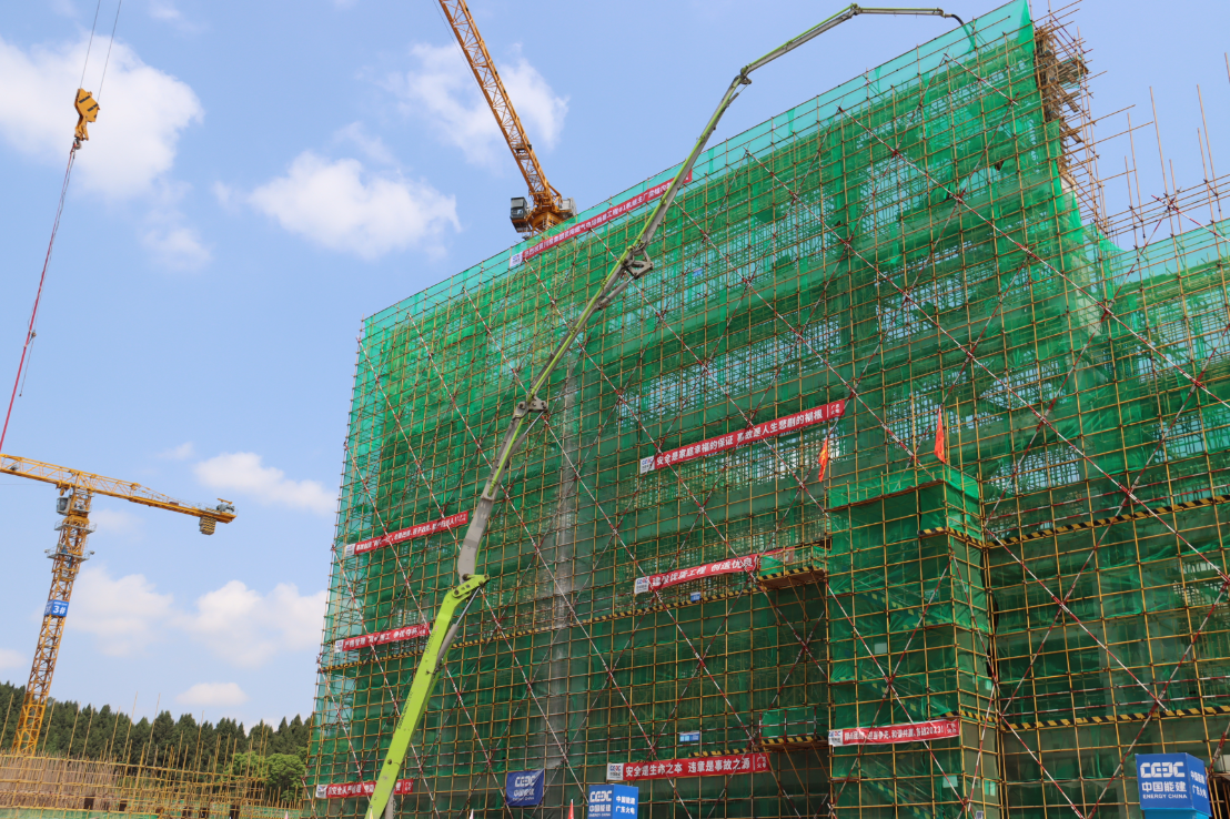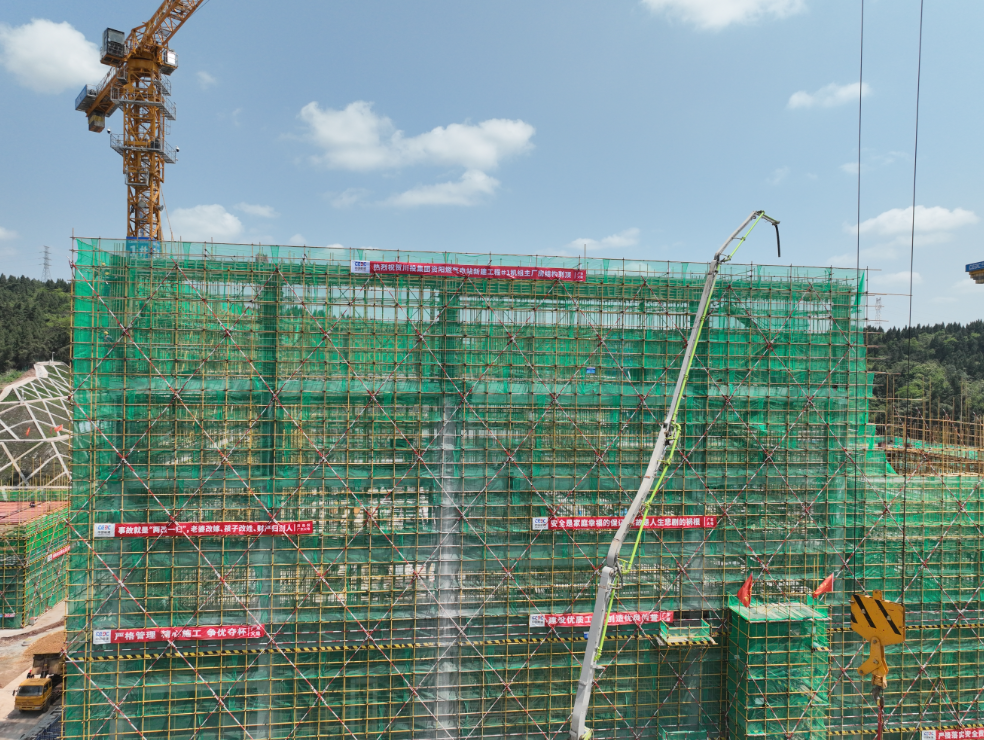 4月27日11:58分,资阳燃气电站新建工程#1机组主厂房39米层梁、柱砼浇筑结束,标志着#1机组主厂房结构正式到顶。