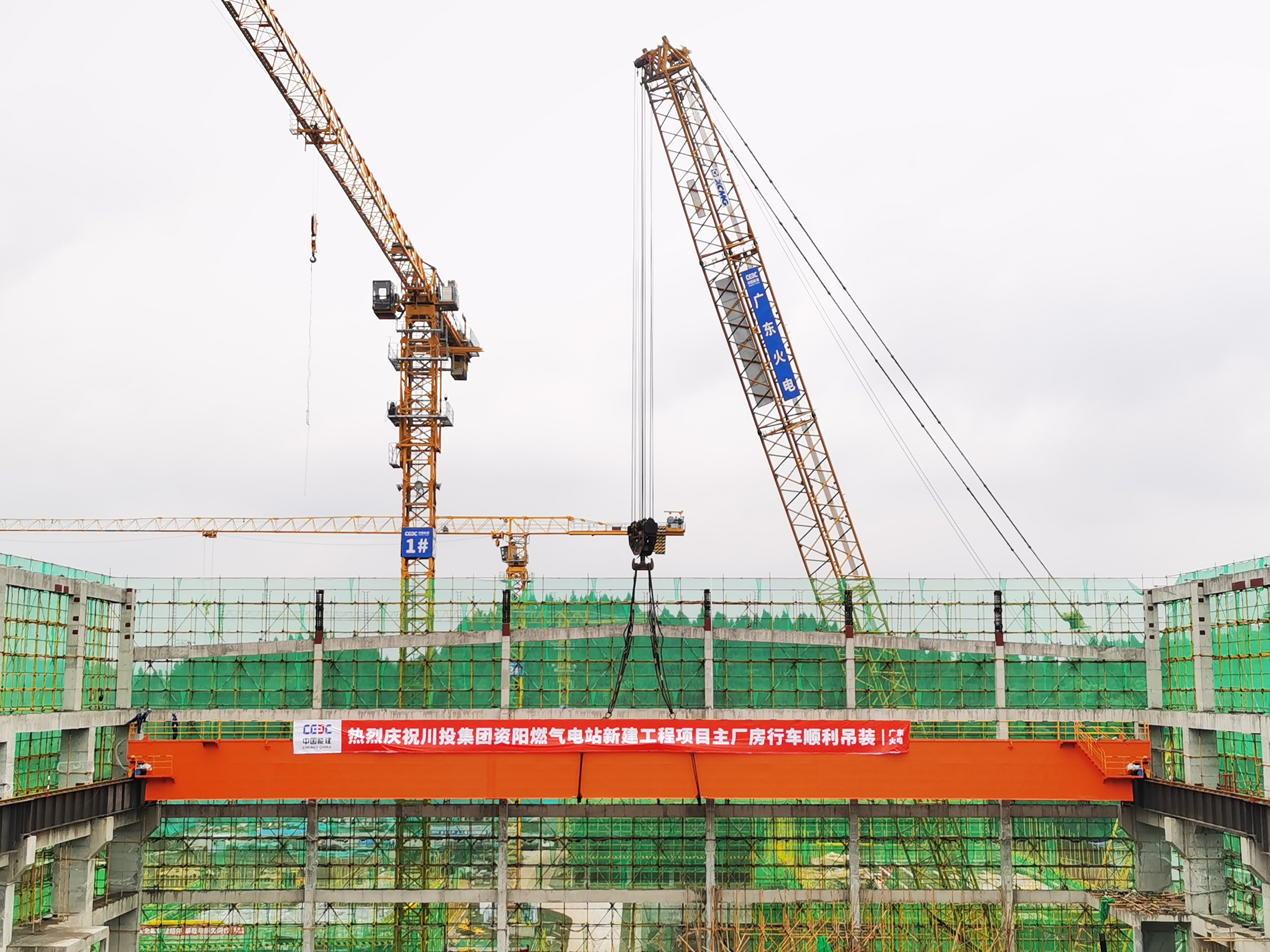 本次吊装的行车梁重130吨,跨距达到61米,属大跨度行车吊装,难度大,安全风险高。资阳气电公司组织参建单位精心制定了大跨度行车吊装危大工程专项施工方案,并由专家对施工方案进行论证,有力确保本次吊装的安全实施。自进入二季度以来,资阳气电公司组织参建各方加快推进项目建设攻坚力度,五一节期间休假不休工,抢抓施工黄金期,继4月27日主厂房结构到顶后,今天又顺利实施主厂房行车吊装,距离“主厂房止水”里程碑节点目标实现又迈出了坚实的一步。