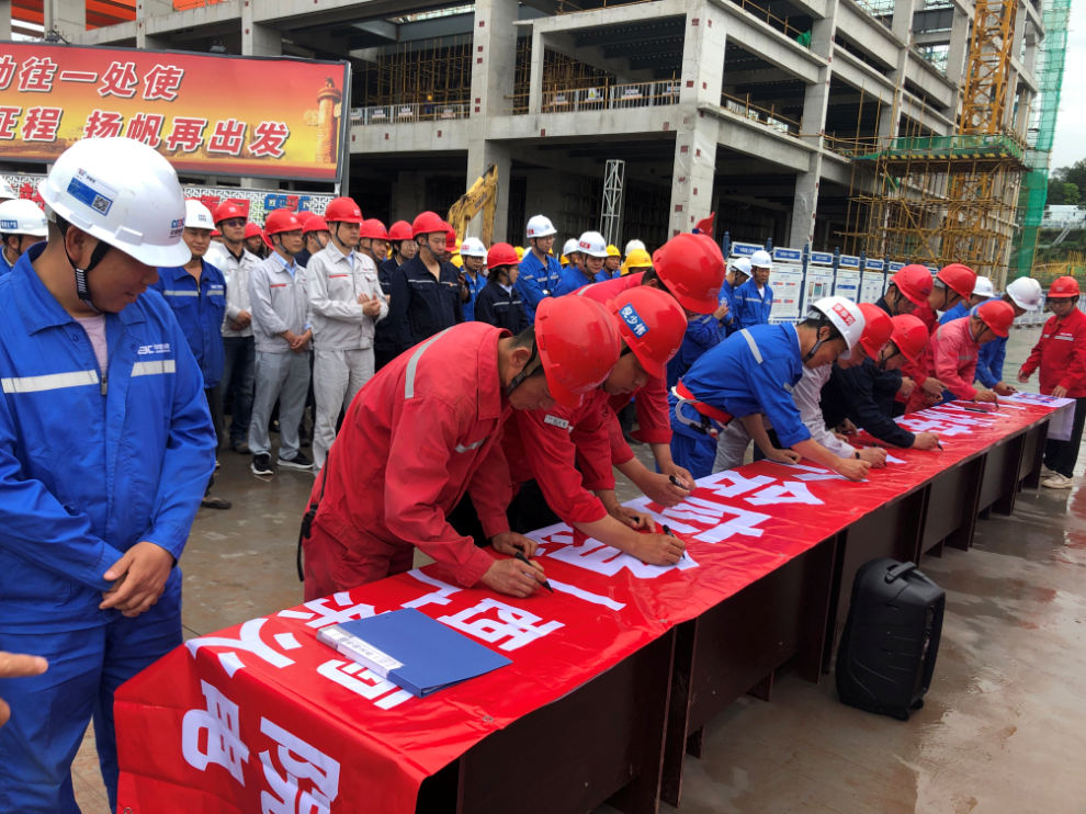 启动仪式上,资阳气电公司及各参建单位干部员工在“人人讲安全 个个会应急”的横幅上签名,庄严承诺,坚决做到守安全底线、建平安工程。