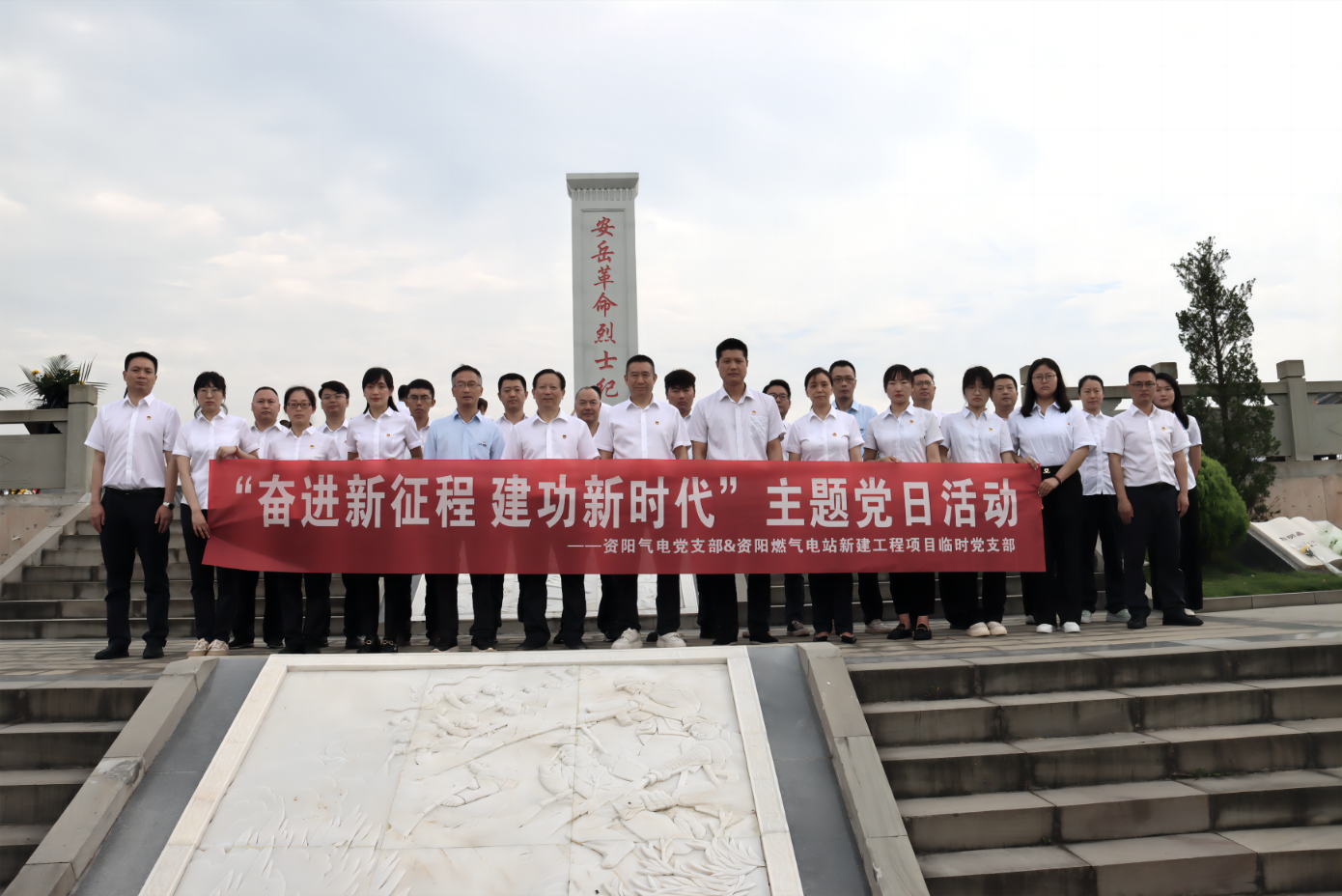 6月30日,资阳气电党支部联合资阳燃气电站新建工程项目部临时党支部前往安岳县革命烈士陵园,通过祭奠革命先烈、重温入党誓词等形式迎接中国共产党102岁生日的到来。