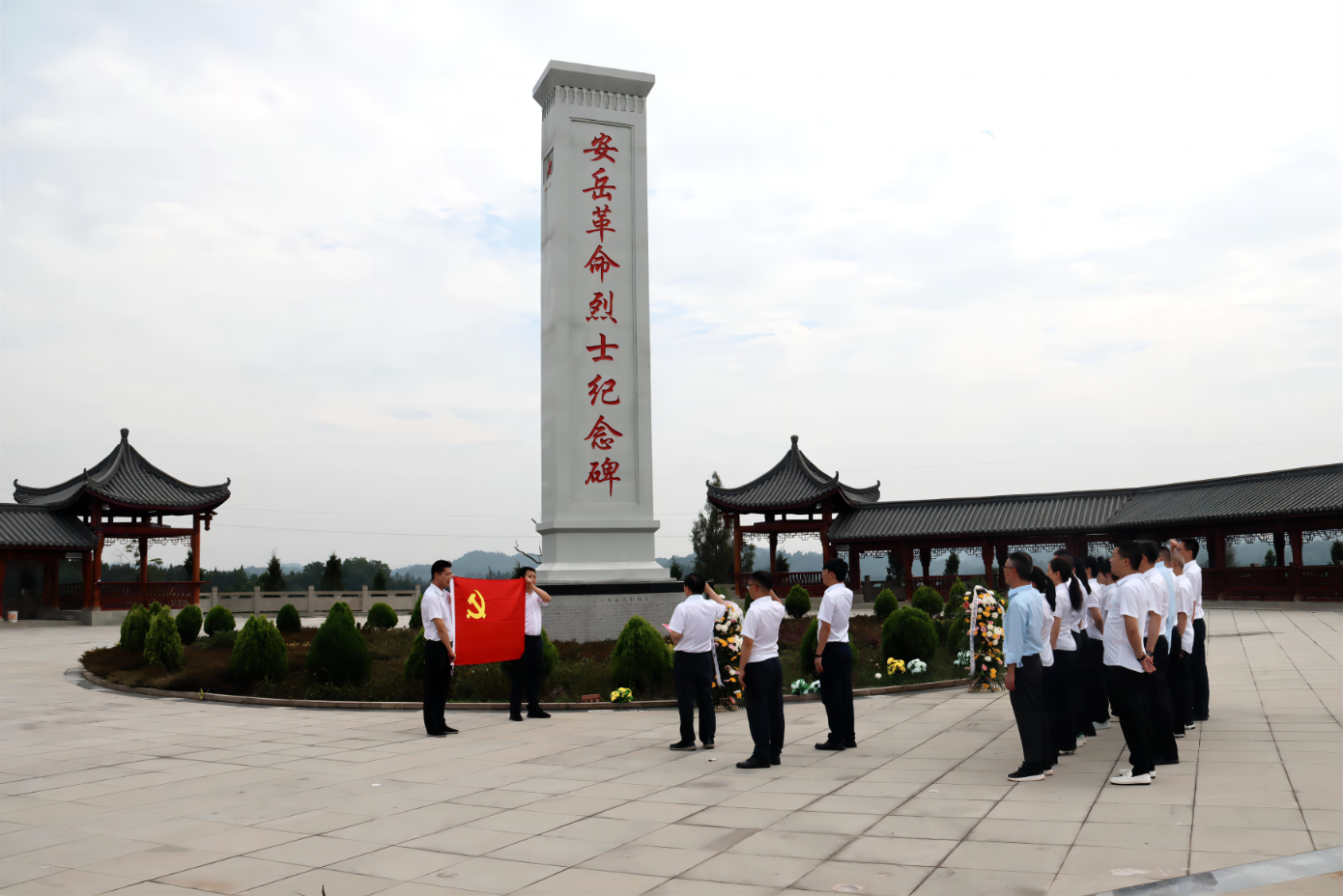 安岳烈士陵园位于龙台镇,陵园内设有纪念广场1处、纪念碑1座、纪念亭2座、革命烈士英名墙2面、松柏烈士墓120个、景观墙6面、浮雕墙12面、次入口文化墙10面。上午9点,安岳县革命烈士陵园庄严肃穆,全体人员整齐列队,庄严肃立,在党支部书记梁红兵主持下,向革命先烈敬献花篮、鞠躬默哀,致以崇高敬意和无限哀思。随后,党员、预备党员对着庄严的党旗,在纪念碑前重温入党誓词,党员代表、预备党员代表、入党积极分子代表纷纷用感言表达对革命先烈的缅怀和对党的忠诚。活动最后,全体人员向陵园内的松柏烈士墓献上鲜花,致敬革命先烈为民族独立、人民解放所立下的丰功伟绩。