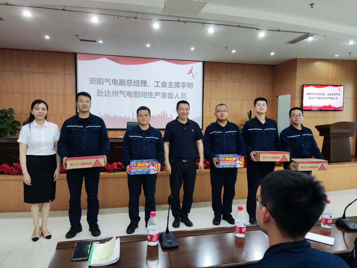 7月13日,入伏后的第三天,资阳气电公司副总经理、工会主席李明赴达州气电慰问公司在外培训生产准备人员,为他们送上清凉饮品并座谈交流。