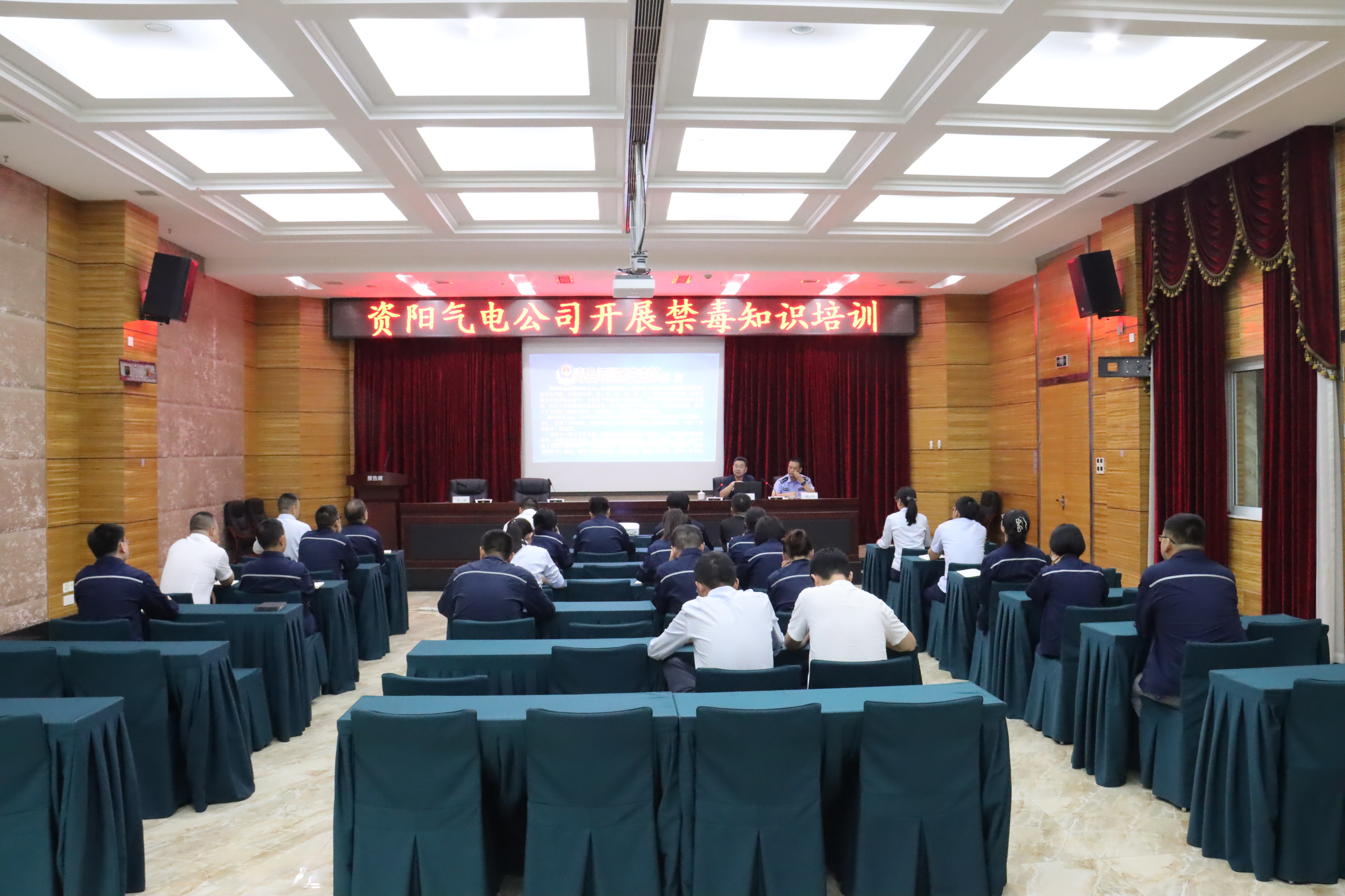资阳气电公司所处安岳县因为地理位置特殊、涉毒历史特殊等原因,毒品案件持续高发,毒情形势非常严峻。为进一步普及毒品预防知识,提高公司干部员工自觉抵制毒品的能力,8月8日,资阳气电公司特邀安岳县禁毒办副主任、县公安局禁毒缉毒大队教导员杨志军和县公安局禁毒缉毒大队原大队长、三级高级警长黄定友到公司开展禁毒知识培训,资阳气电公司副总经理、工会主席李明主持培训会。