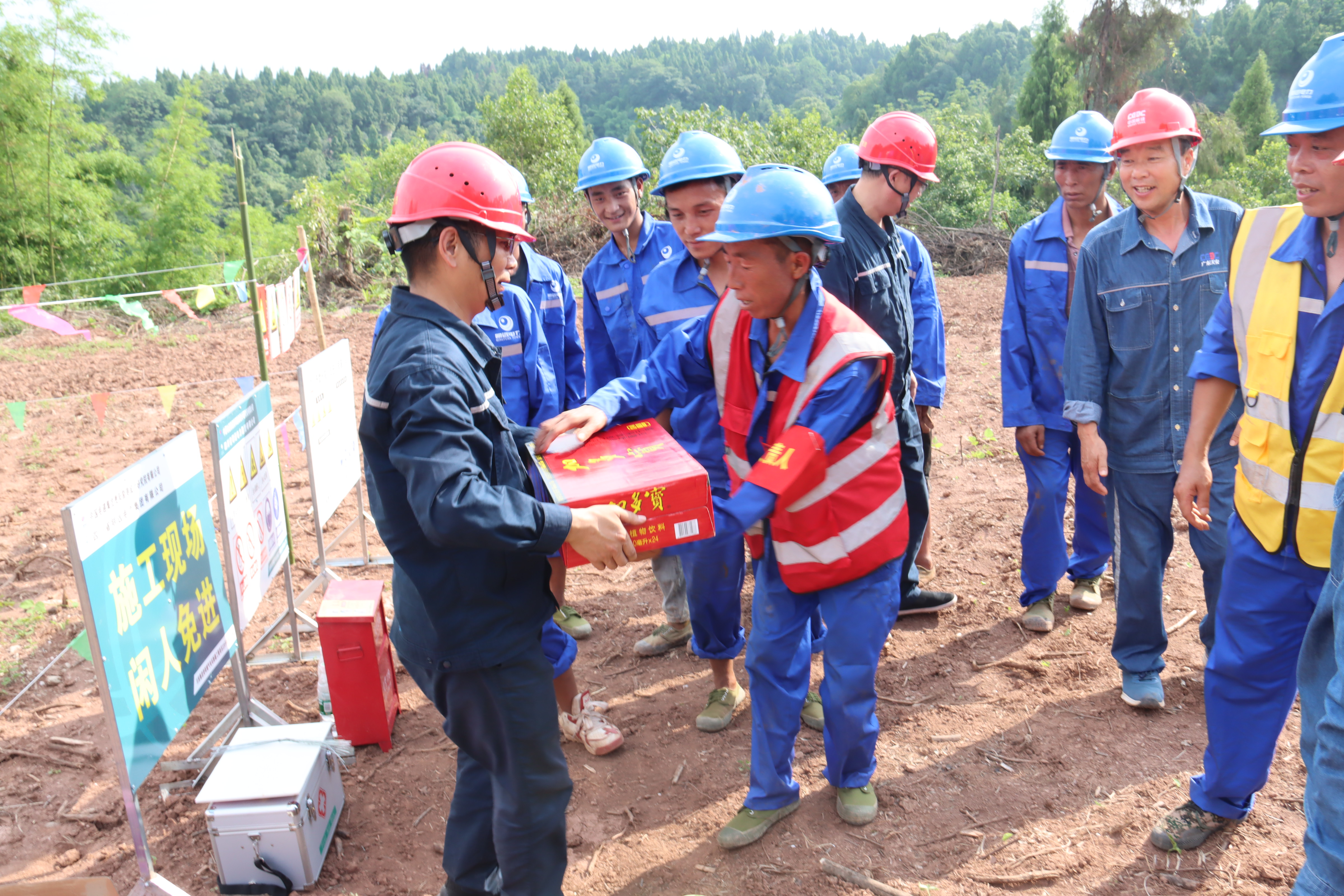 8月11日,副总经理严天元来到220千伏送出工程塔基基坑点位慰问作业中的施工人员并送上清凉慰问品。他讲到,220千伏送出工程工期紧、任务重,且多数为野外作业,条件艰苦,他叮嘱施工人员在高温天气下一定要做好防暴晒措施,确保安全施工。
