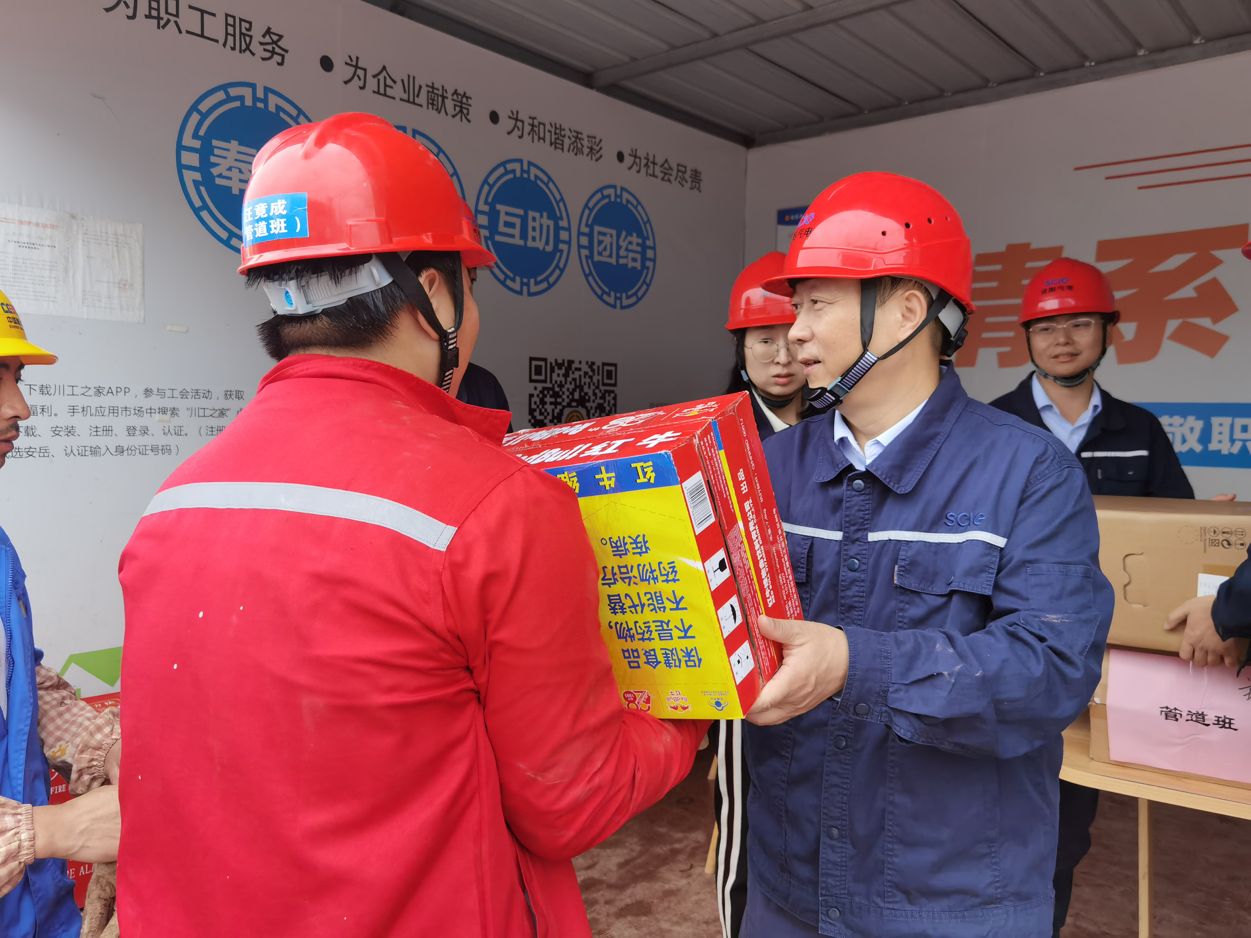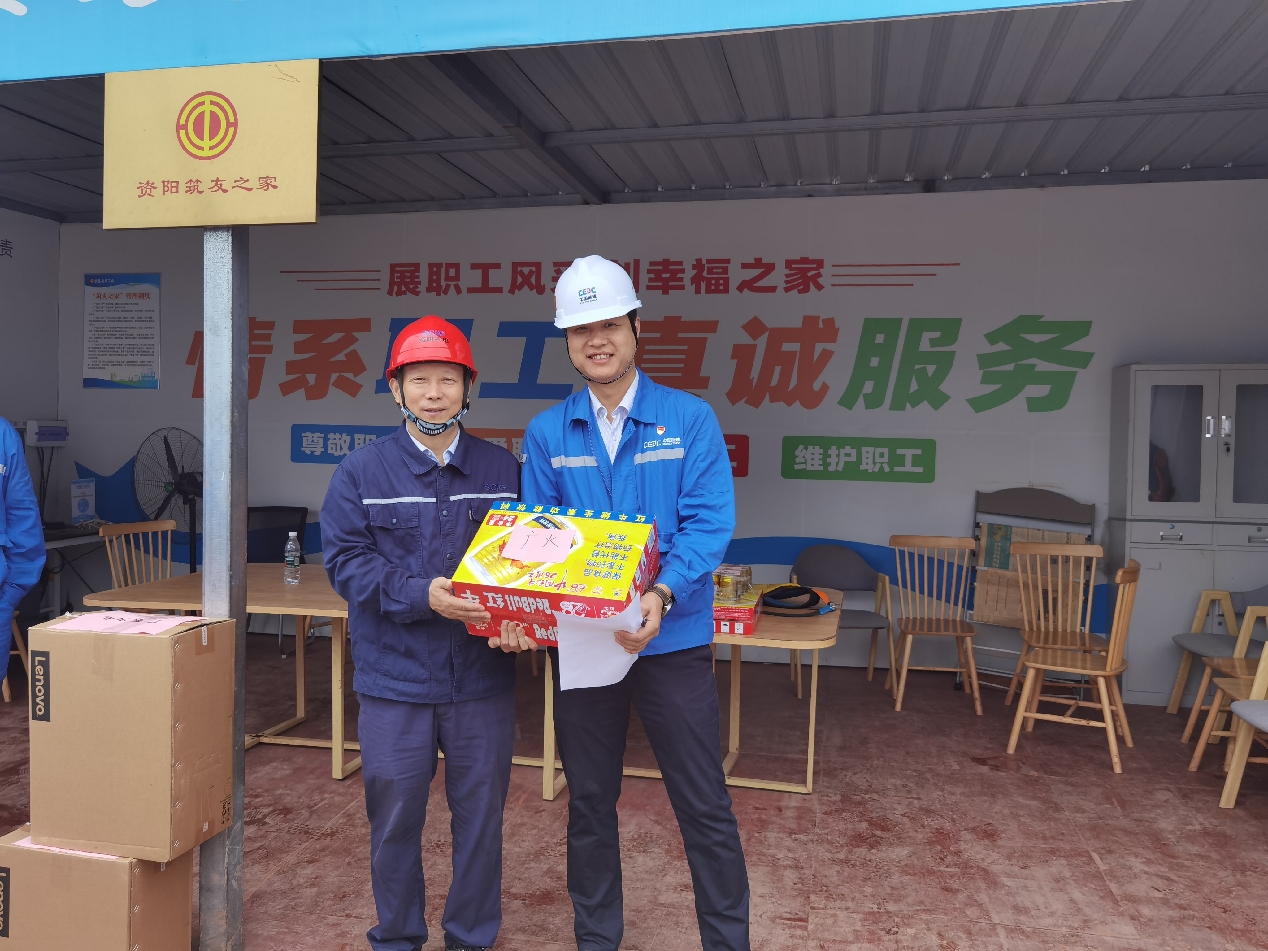 一早,资阳气电执行董事、总经理梁红兵带队先后来到项目主体工程施工现场和220kV送出工程项目部,为坚守岗位的一线建设者们送上节日问候和祝福,让他们及时感受到“娘家人”的关怀,并送上月饼、饮料等慰问品,衷心感谢他们为川投集团资阳燃气电站项目建设的辛勤付出和无私奉献,希望大家在工作中保重身体、注意安全。