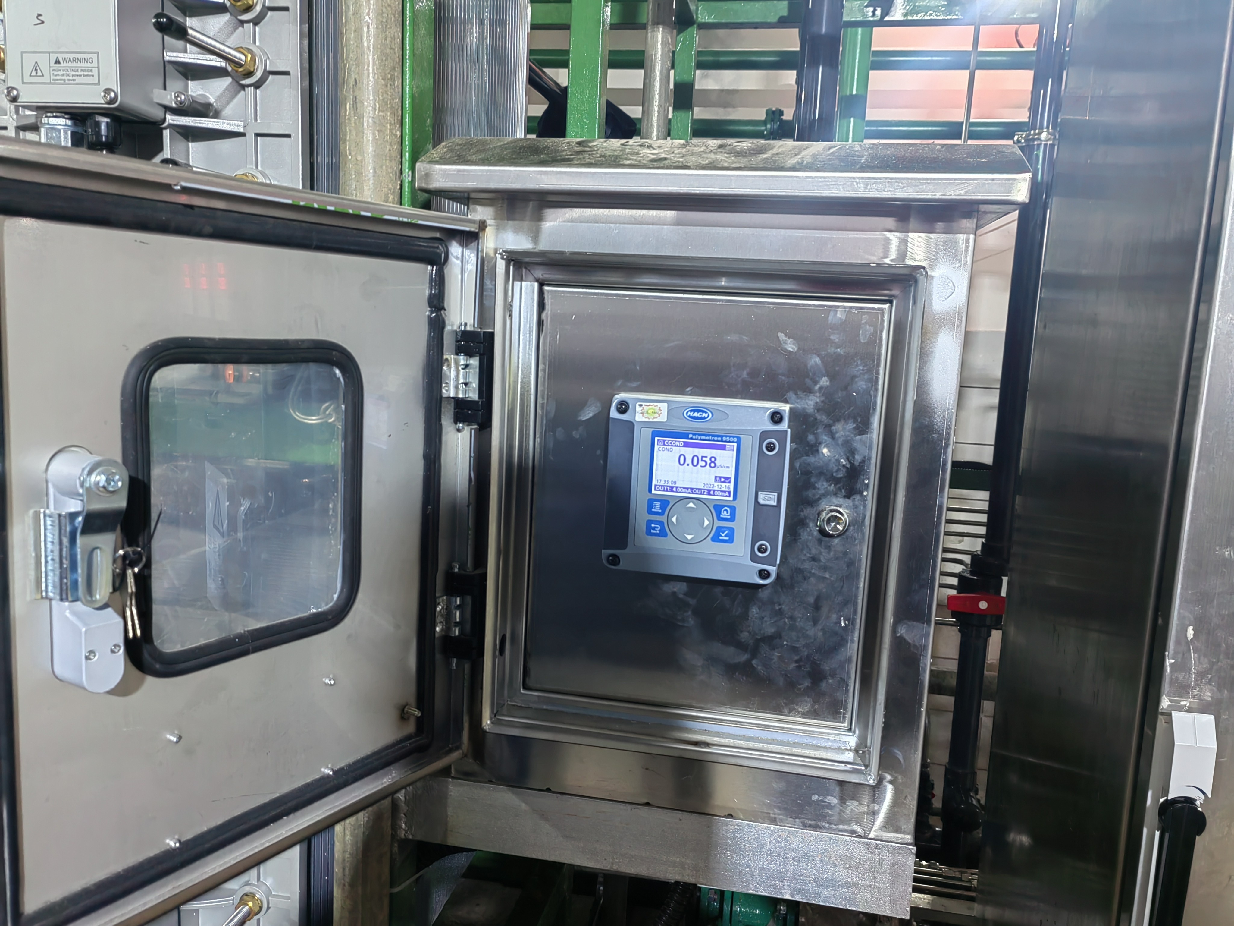 2023年12月16日17时33分,资阳燃气电站锅炉补给水车间EDI出口电导率稳定至0.06μs/cm,小于标准值0.2μs/cm,标志着项目锅炉补给水系统制水成功。