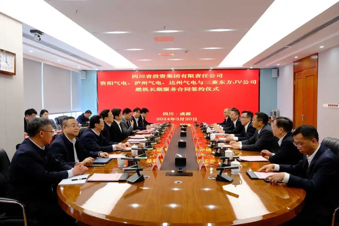 为积极贯彻落实全省电源电网发展规划决策部署,川投集团在确保目前全省唯一在运燃电项目达州气电(一期)的持续安全运营基础上,正全力推进资阳、泸州、达州(二期)三大燃电项目建设。为确保项目按期投产发电并持续安全运营,3月20日,川投燃电所属资阳气电、泸州气电、达州气电三家公司与三菱重工东方燃气轮机(广州)有限公司(以下简称“三菱东方JV公司”)在成都正式签订燃机长期服务合同。川投集团党委书记、董事长吴晓曦,东方电气集团东方汽轮机有限公司党委书记、董事长刘辉,三菱重工业株式会社燃机事业部售后服务总负责川口高广,三菱东方JV公司总经理川上正尚等出席签约仪式。