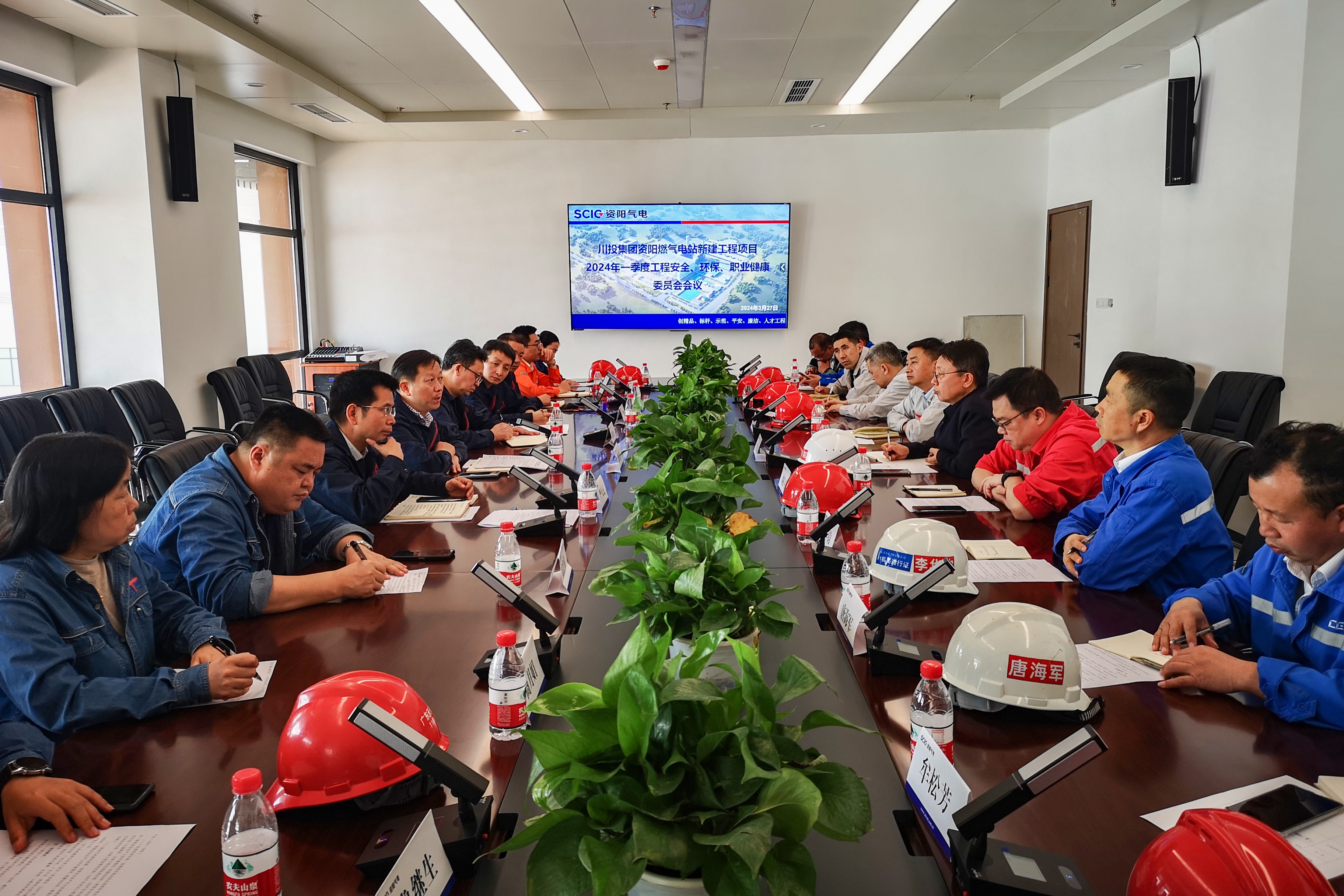 3月27日,资阳燃气电站项目召开2024年一季度工程安全环保职业健康委员会会议。会议由公司执行董事、总经理、工程安环职委员会主任梁红兵主持。