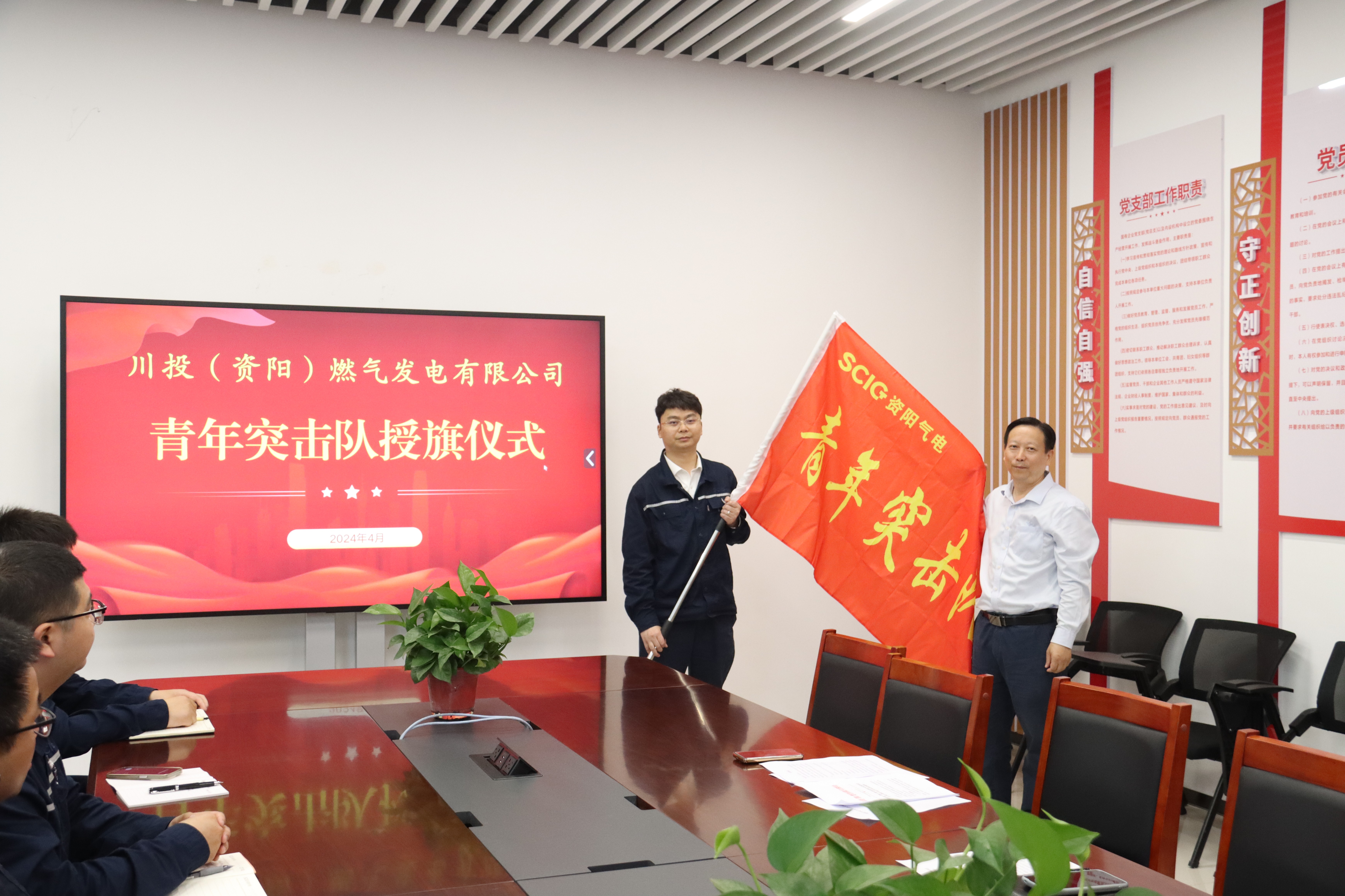 4月29日,资阳气电公司举行青年突击队授旗仪式,以激励广大青年员工聚焦资阳气电公司工程建设、生产运营各项重点任务,挺膺担当、建功立业。公司党支部书记、执行董事、总经理梁红兵现场授旗。