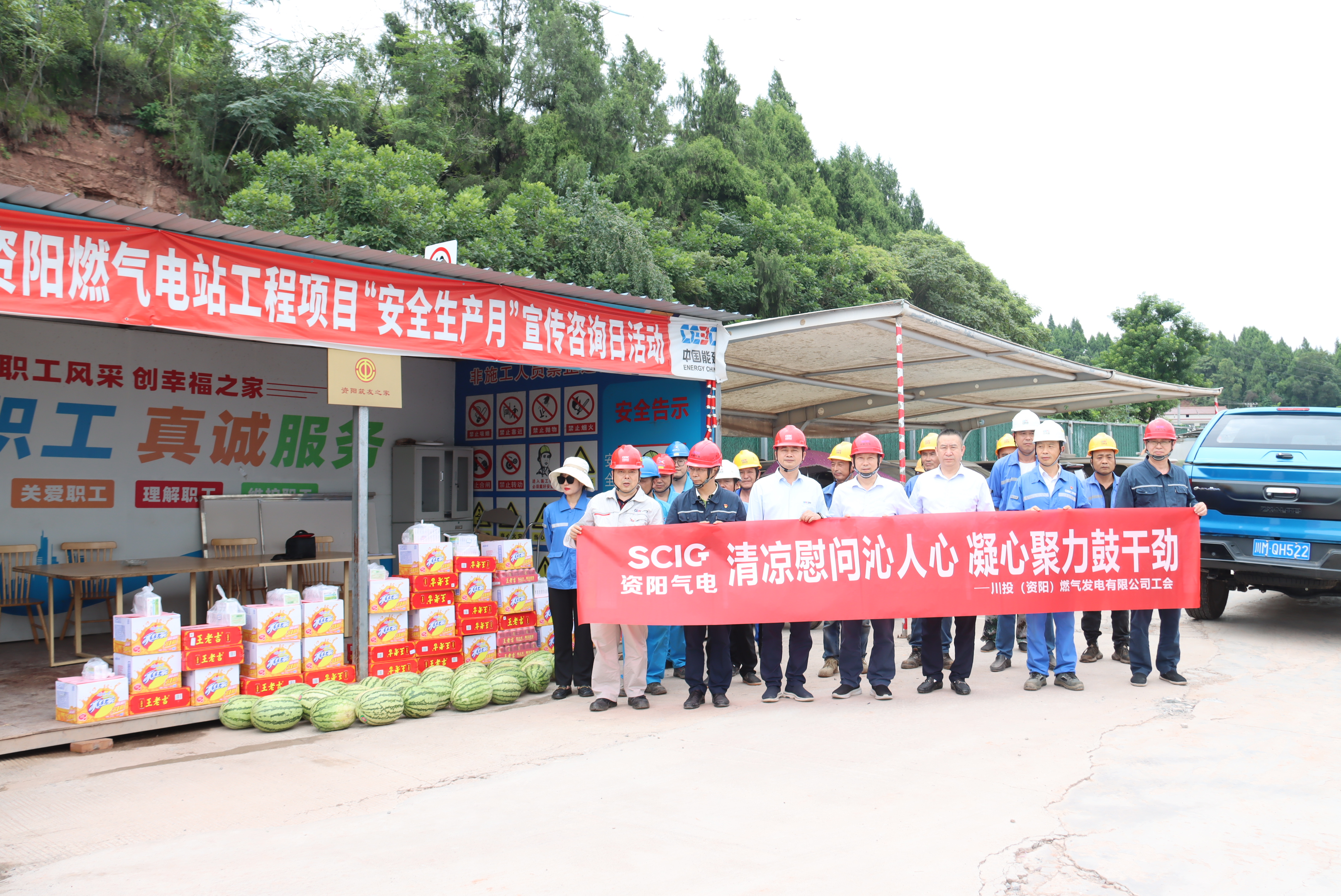 进入夏至三伏,安岳持续高温,闷热难耐,也正值资阳燃气电站项目收官战的关键时期,为表达对高温天气下奋战在一线施工人员的关怀和敬意,7月29日,资阳气电公司党支部书记、执行董事、总经理梁红兵带领班子成员深入项目现场为资阳燃气电站项目建设者们送清凉。