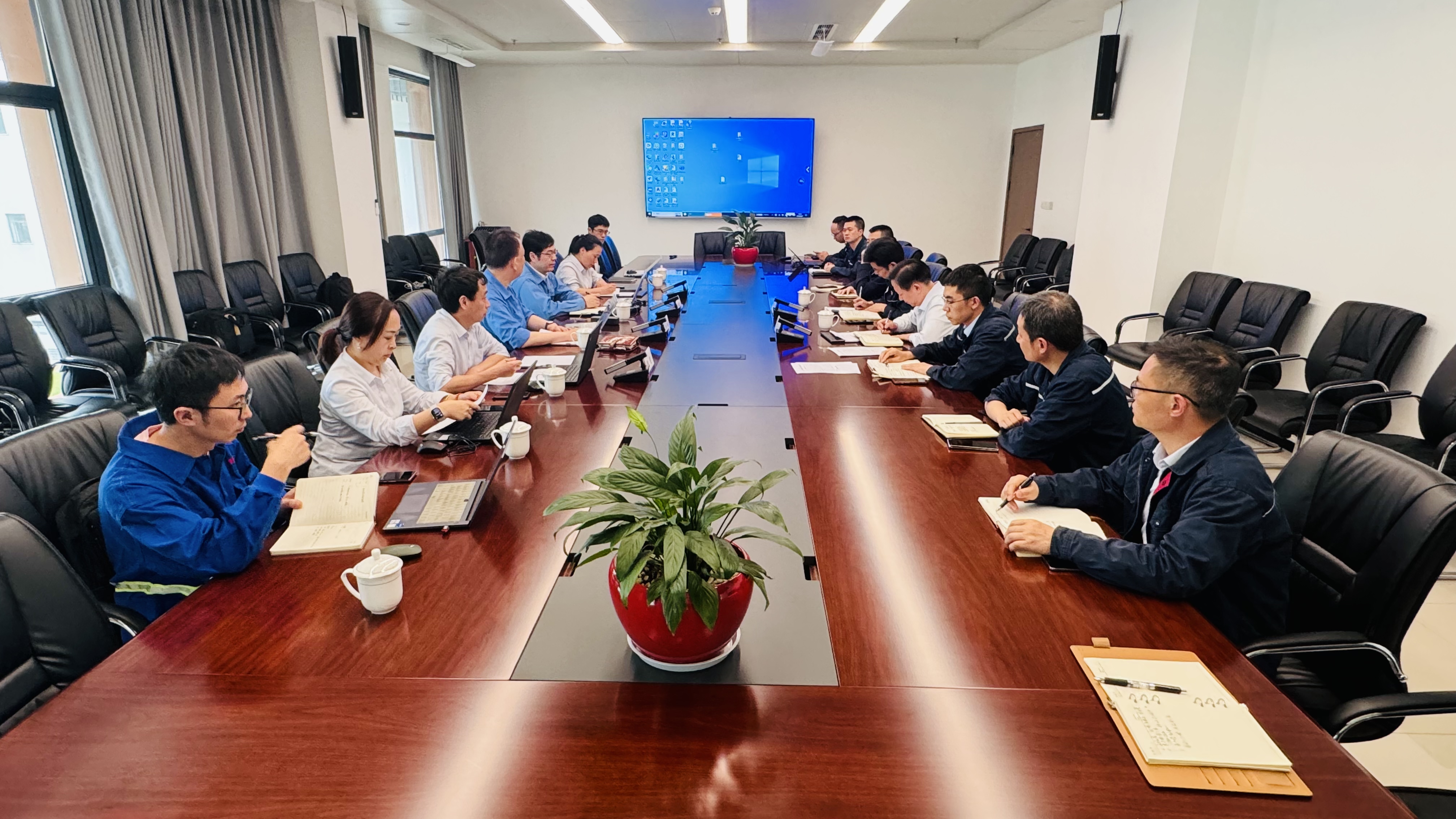 交流会上,三菱重工技术人员介绍了#1燃机例行检查情况,对后续燃烧器的运行提出了建议意见。三方人员也分别就燃机周期性检修、TCA换热效率提升解决系统性风险以及燃机性能模式优化、季节性燃烧模式调整以及机组冷态启动模式优化等问题进行了讨论。增田和彦、陶健表示,对今天交流的问题认真组织技术人员研究,找到最佳解决对策,及时落实处理。