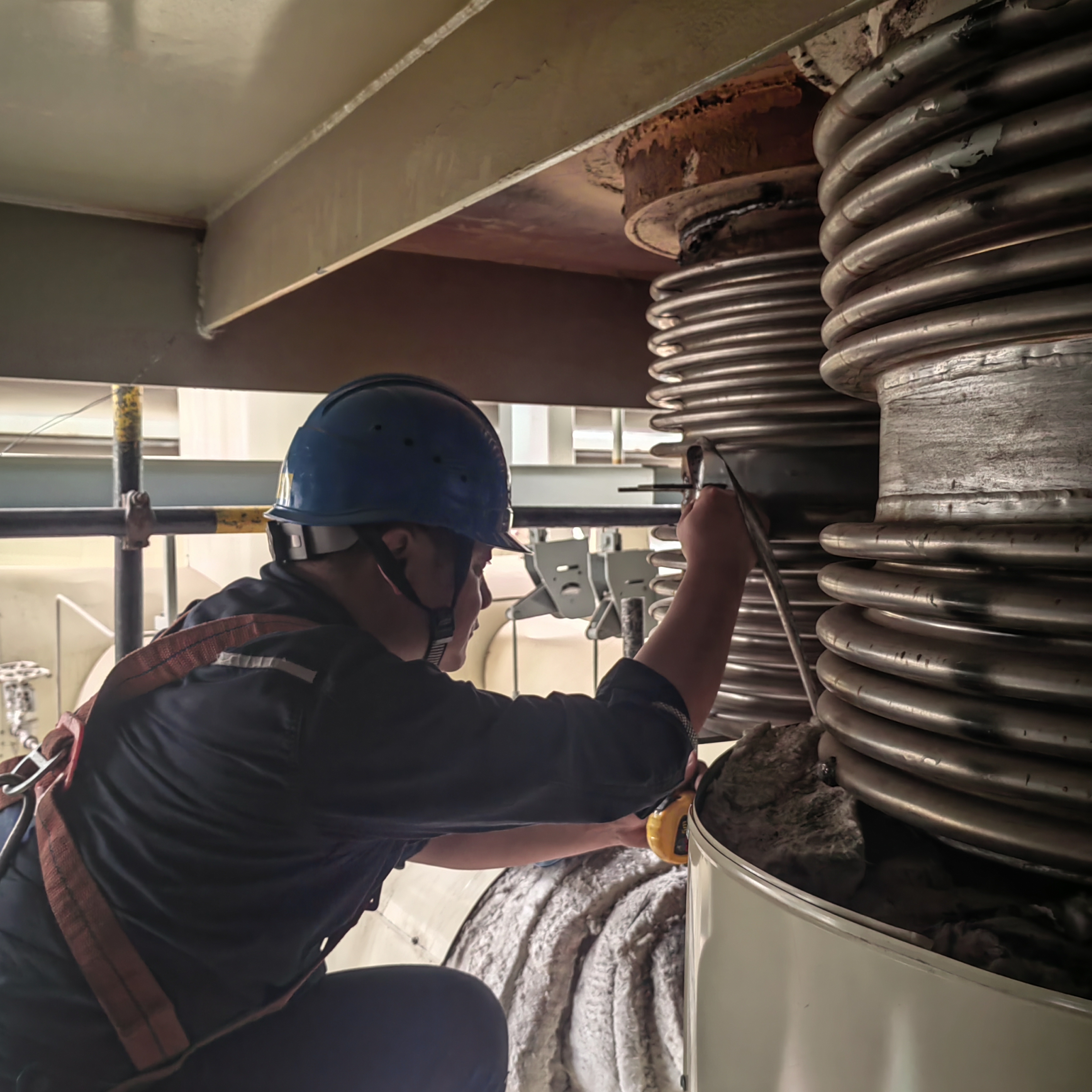 经严格按设备说明书要求逐项验收,新更换的膨胀节各项指标均达到设计标准。此次关键设备消缺通过规范化、精细化的检修实践,进一步提升了设备健康水平,为机组迎峰度夏及后续长周期安全经济运行奠定了坚实基础。