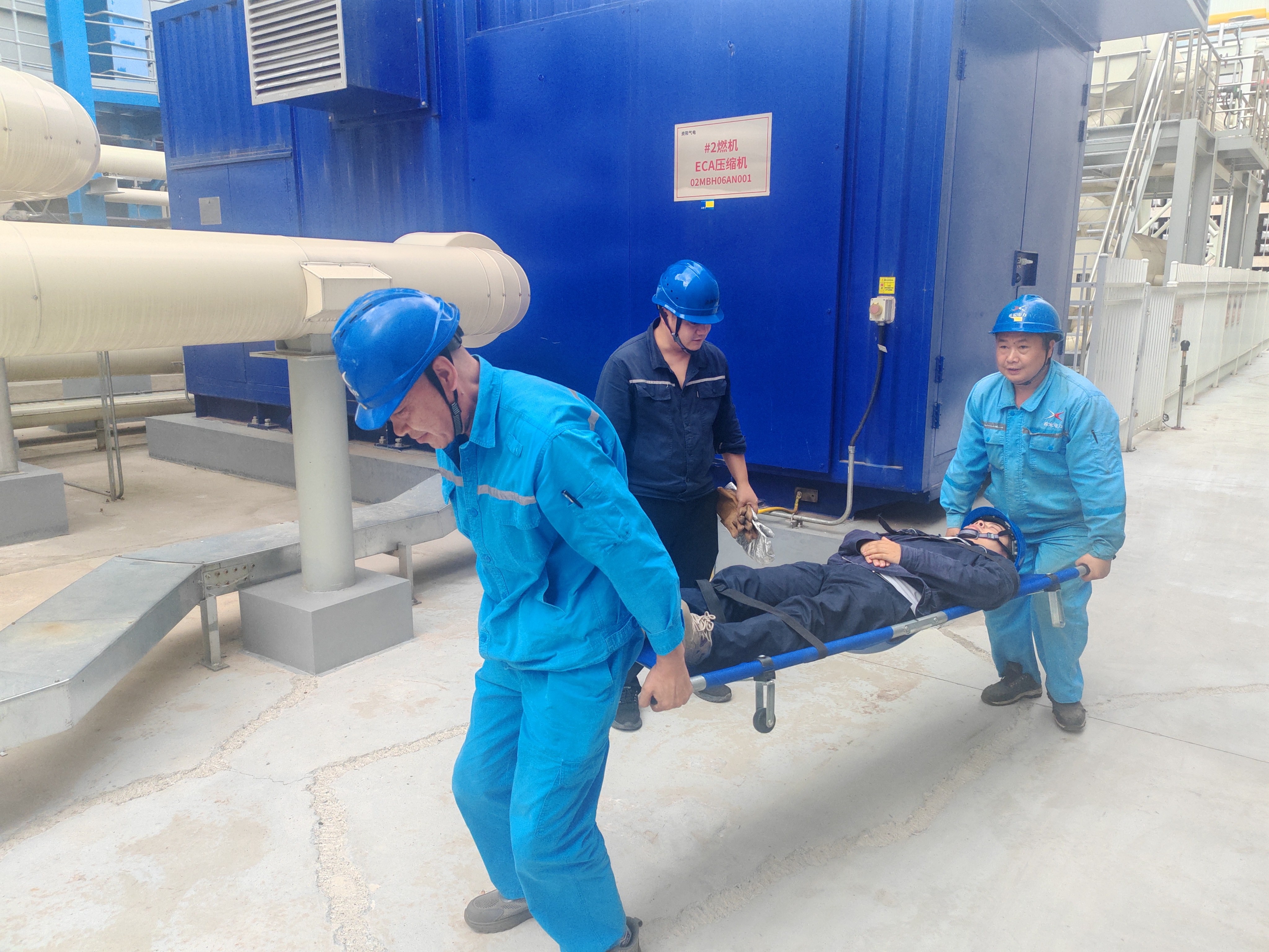 人员受伤后立即大声呼救并第一时间向当值值长报告。值长接到报告后,公司立即启动特种设备事故应急预案,各应急小组迅速响应、协同联动。整个演练过程,从事故报告、应急启动、现场处置、人员救护到设备隔离,各个环节衔接紧密,参演人员职责清晰、行动果断,展现了良好的专业素养和协同作战能力。