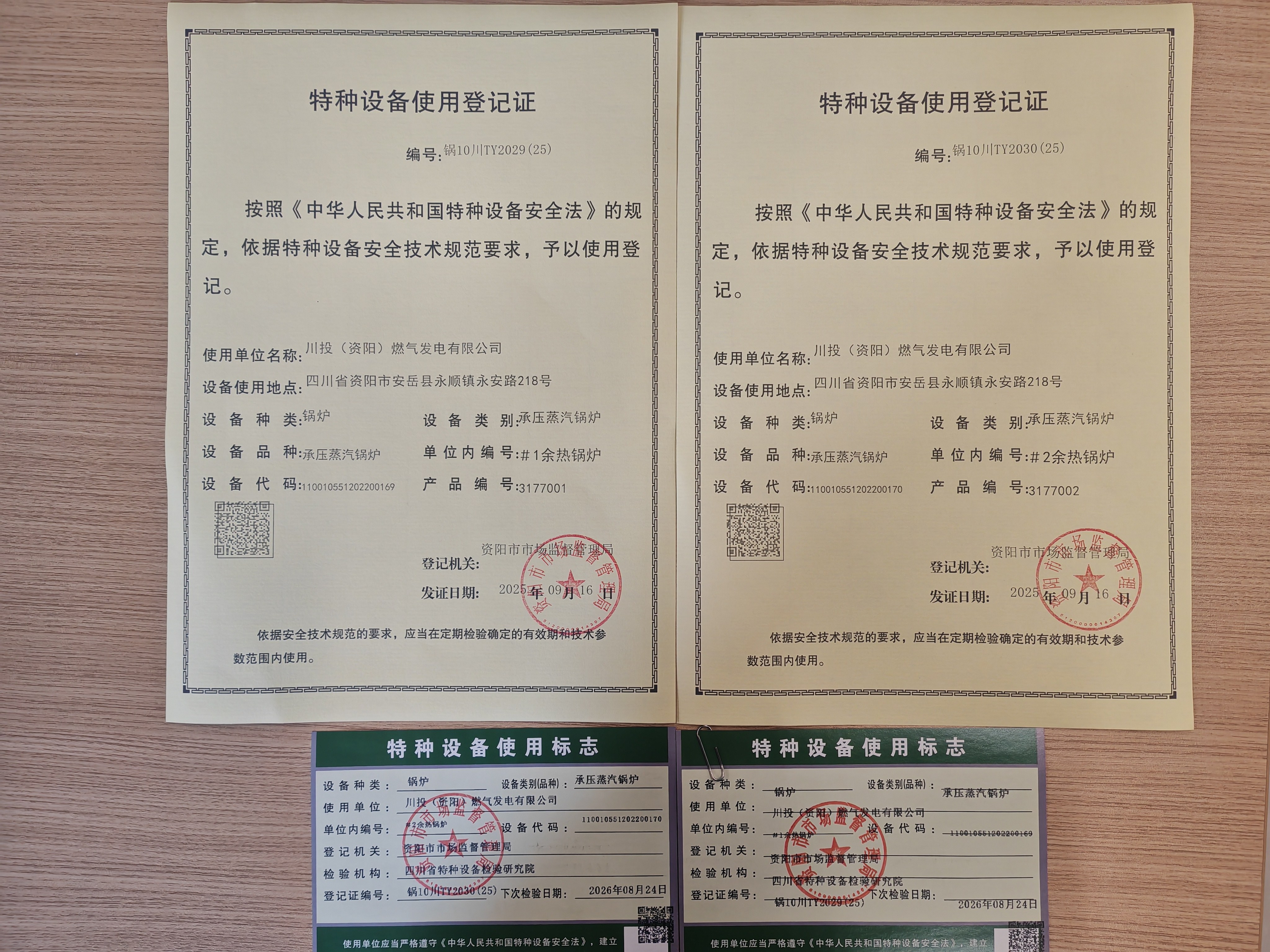 9月16日,资阳气电顺利完成全厂所有特种设备取证工作,其中所取得的锅炉使用登记证书,是四川省内继天明电厂之后第一个取得A级电站锅炉证书的发电厂。此举标志着企业特种设备管理工作迈入规范化、标准化新阶段,为安全稳定运营提供了坚实保障。
