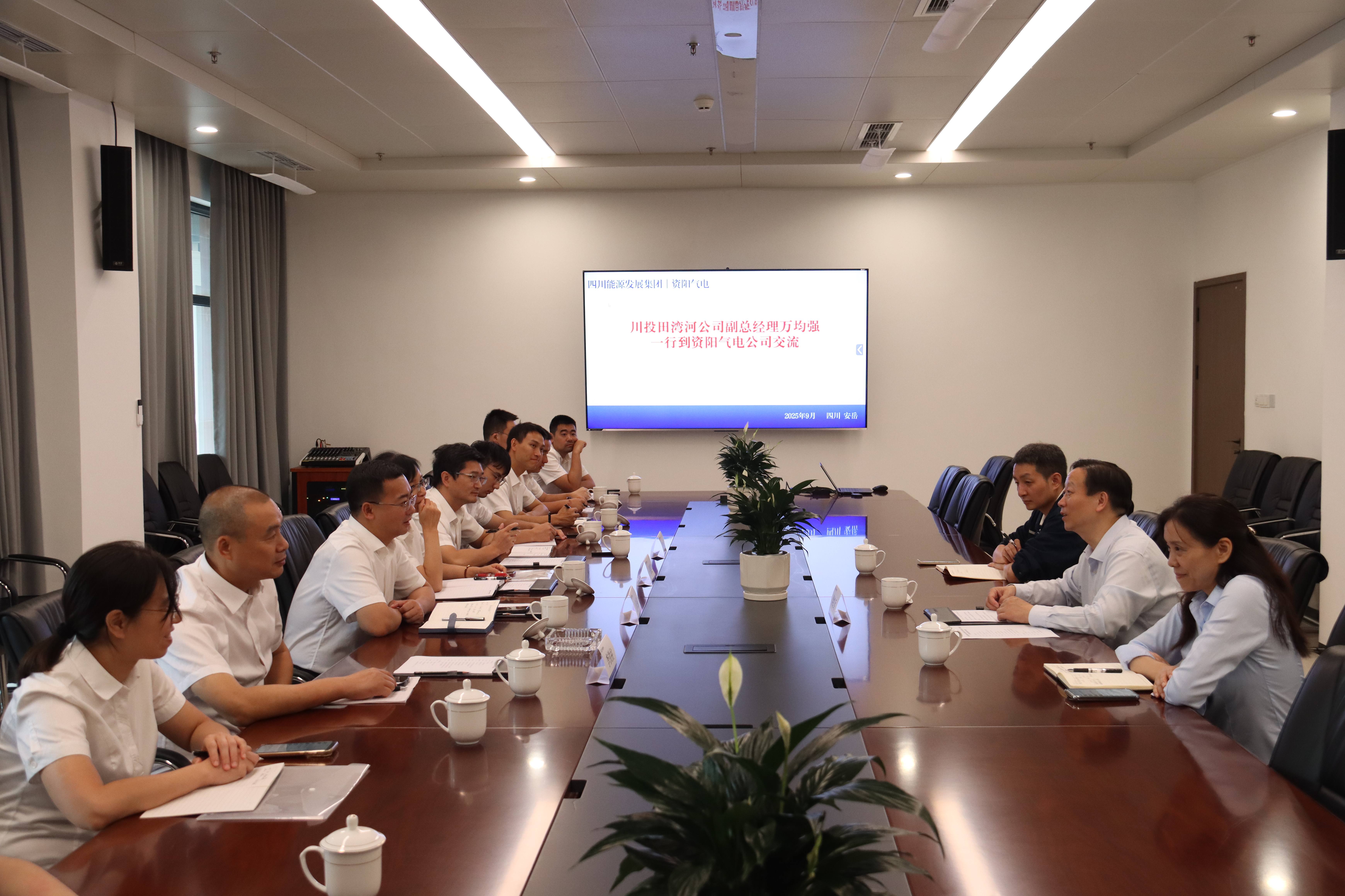 9月26日,四川川投田湾河开发有限责任公司副总经理万均强一行到资阳气电公司开展业务交流。资阳气电公司执行董事、总经理梁红兵陪同。