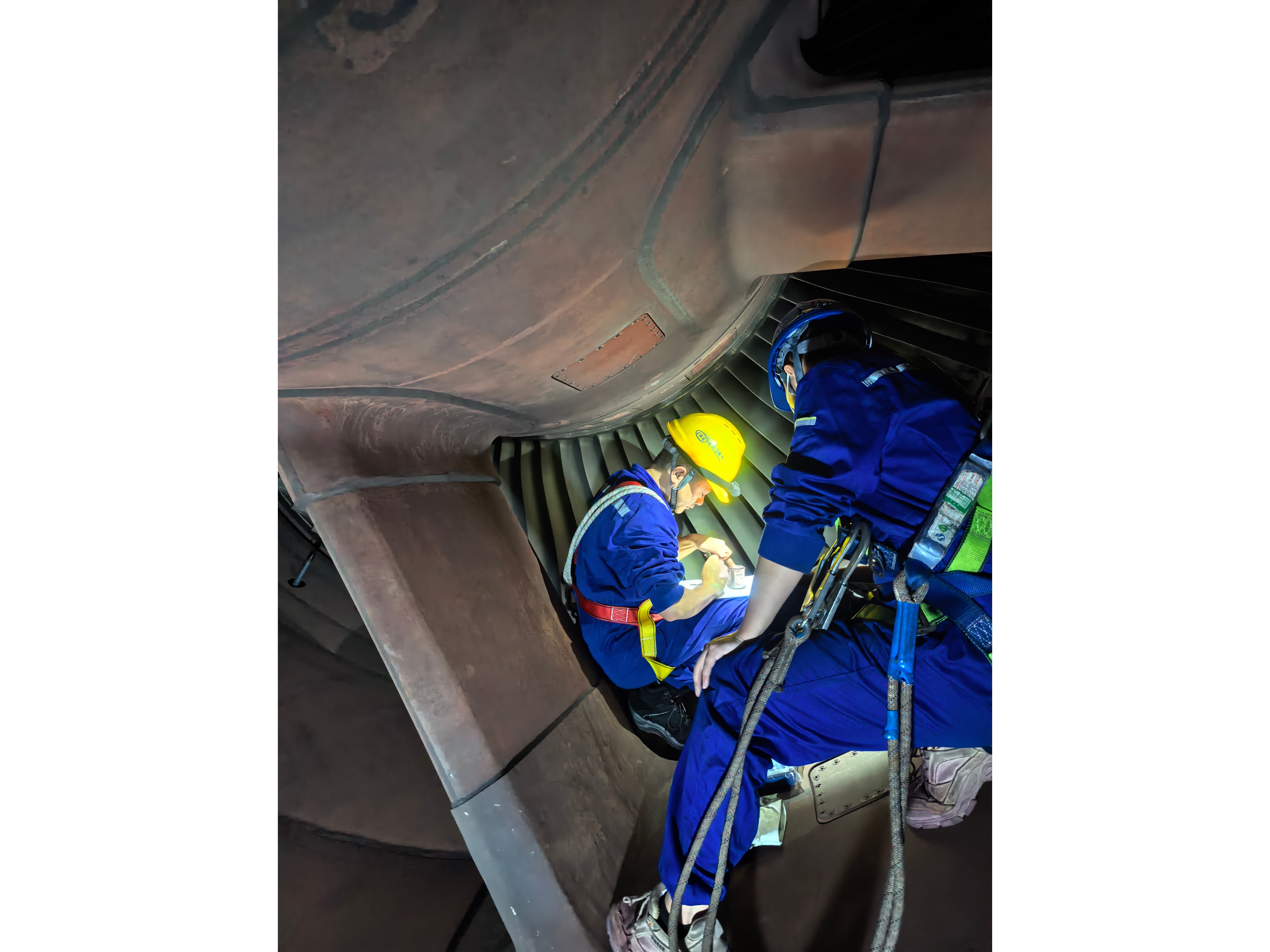 检修团队还使用内窥镜对压气机第12、13、14、15级动叶和静叶进行了细致检查,并对燃烧器尾筒、透平第1级动叶与静叶及其分割环的涂层状况进行了全面评估。检查结果表明,相关部件均处于正常状态,不影响机组后续安全稳定运行。