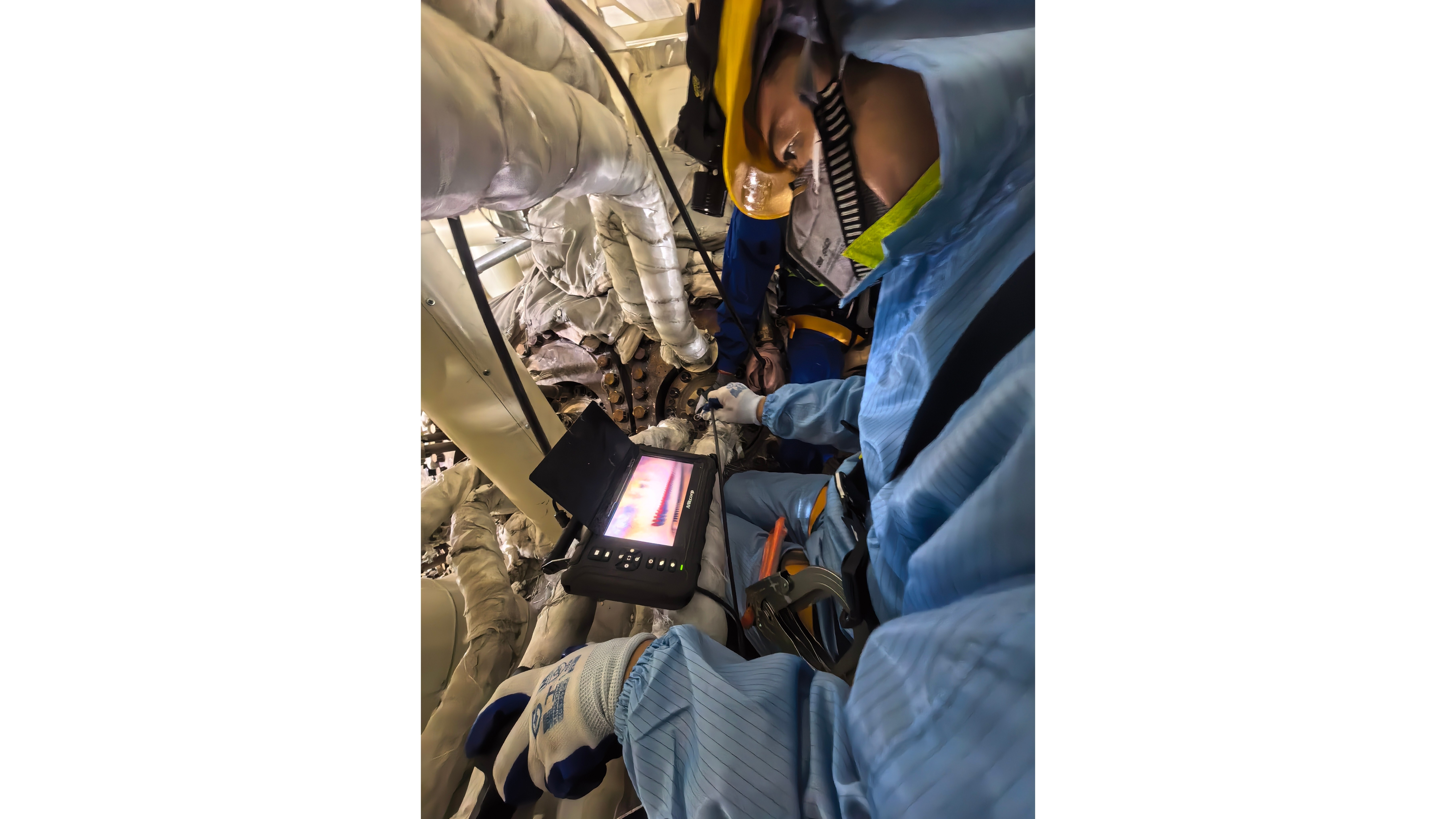 本次例行检查项目增加了近期同类型机组发生的故障,检查和隐患治理共历时5天。检查范围覆盖燃机核心关键部件,包括燃烧器旋流器涂层、旋流器压缩空气进气多孔板螺栓、联焰管、透平1级动静叶及分割环、压气机15级动静叶、OGV、排气段挡气板螺栓及防喘放气消音器支撑焊缝、IGV(进口导叶)与VV(可变喷嘴)链接装置、TCA冷却空气惯性过滤器后回气管道清洁度等关键部位,实现核心系统全覆盖、无死角排查。