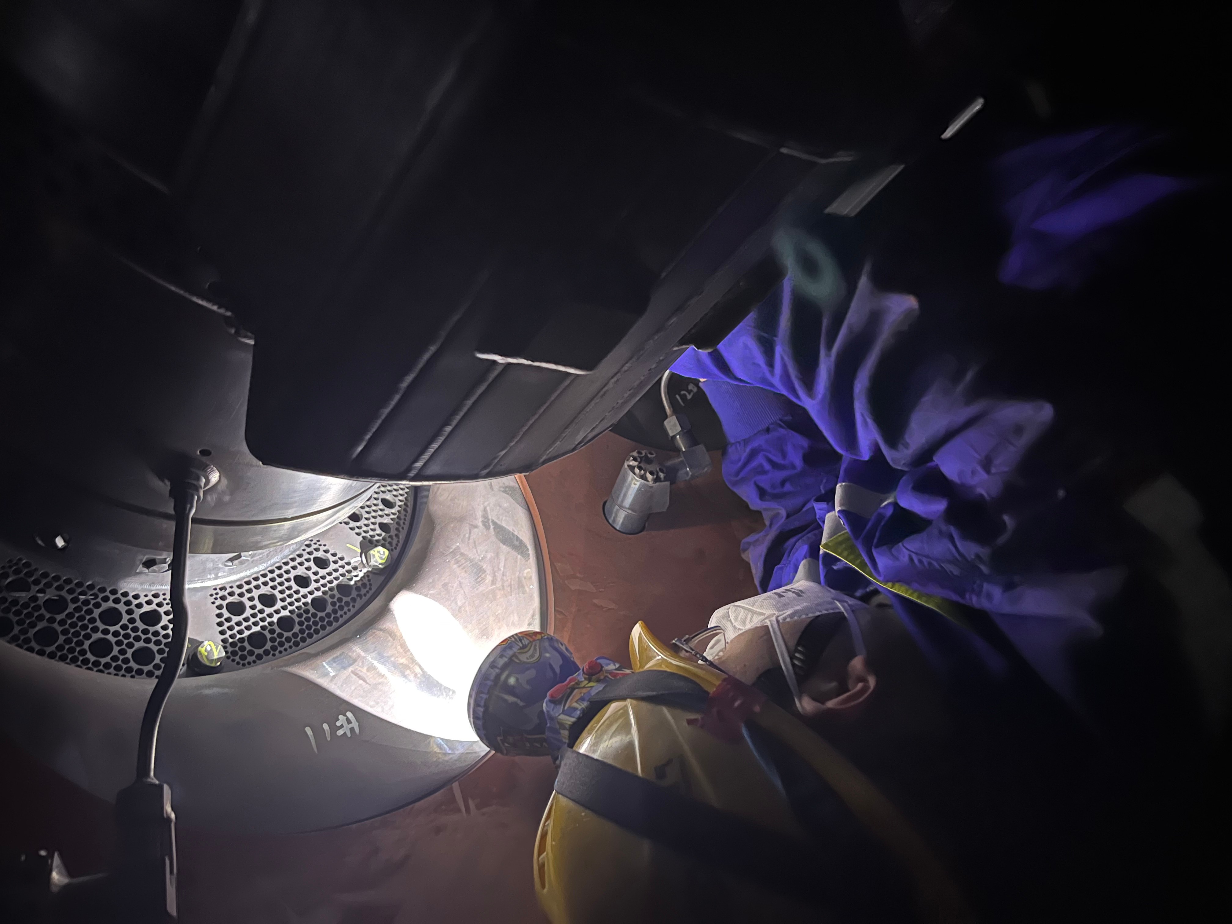 高压主汽阀阀盖泄漏缺陷,经检查判断为阀盖螺栓紧力不足导致高负荷情况下阀盖漏气,设备部组织技术人员分析研究,制定抢修方案,根据现场情况和设计要求对螺栓热紧旋转弧长进行调整,消除了缺陷隐患。在抢修期间设备部还协助东汽开展了2号机燃机燃兼压缸内燃烧器旋流器螺栓及联焰管螺栓的检查工作,发现部分燃烧器螺栓止动垫片存在错位情况和联焰管螺栓锁线断裂情况,检查中发现的问题均已处理完成。