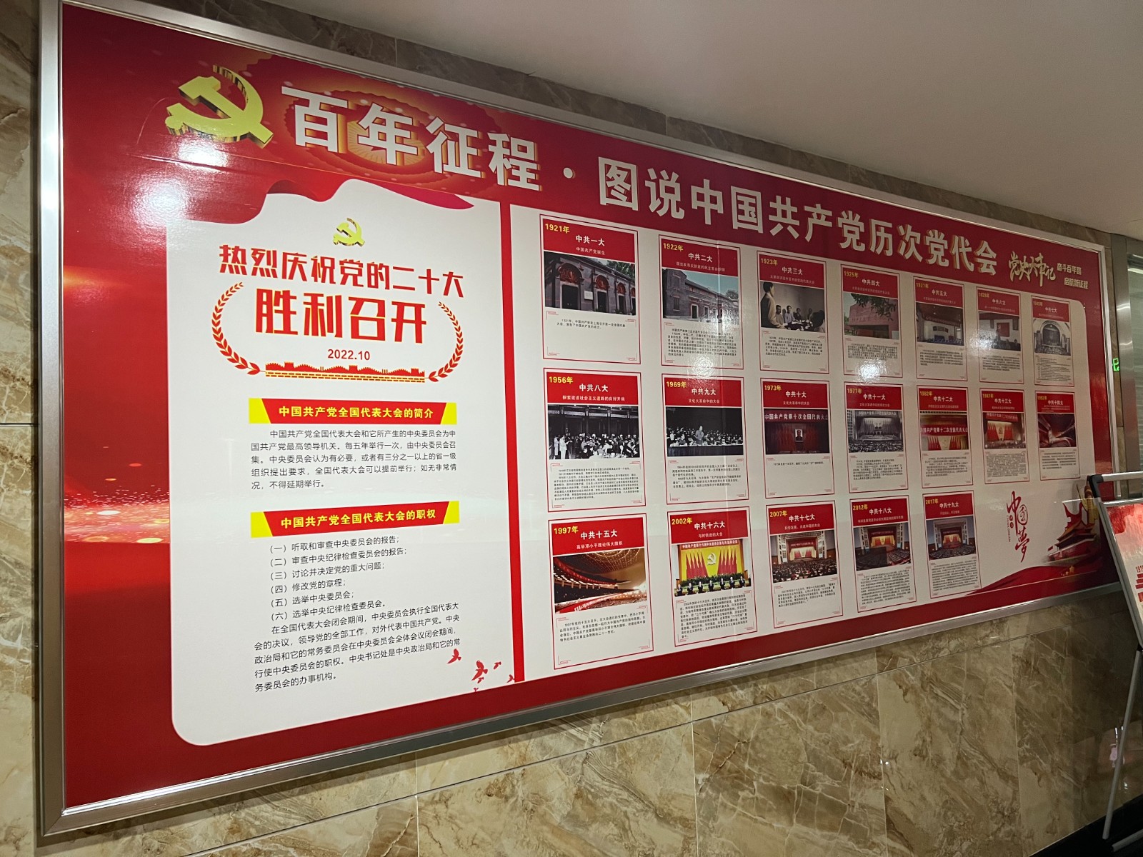 十年奋斗,十年辉煌。党的二十大是党和国家政治生活中的一件大事,是广大共产党员的一件喜事。为迎接党的二十大胜利召开,公司制定了“喜迎二十大 永远跟党走”主题宣传教育活动实施方案,通过公司微信群发布新闻信息,制作历次党代会成果、党百年奋斗成就宣传展板,悬挂庆祝党的二十大胜利召开的横幅标语等形式迎接党的二十大胜利召开。